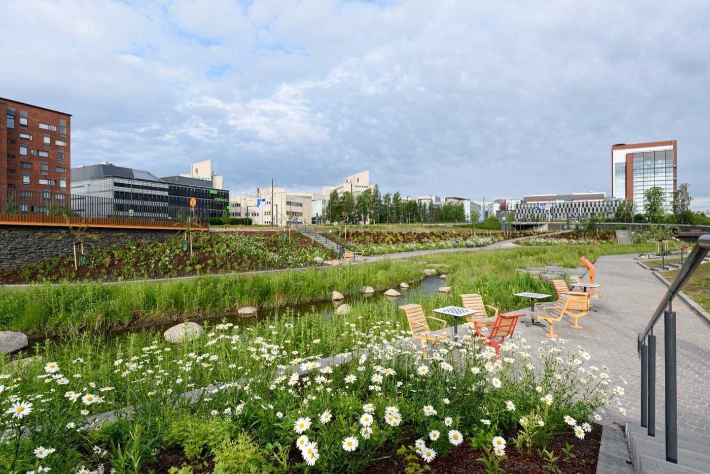 Hatsinanpuisto là một dự án đầy cảm hứng dành cho các kiến trúc sư cảnh quan và chủ đầu tư, khẳng định rằng phát triển đô thị hoàn toàn có thể đi đôi với việc gìn giữ màu xanh và hệ sinh thái.