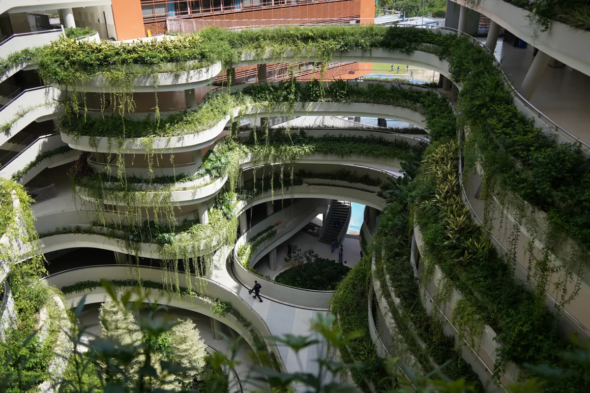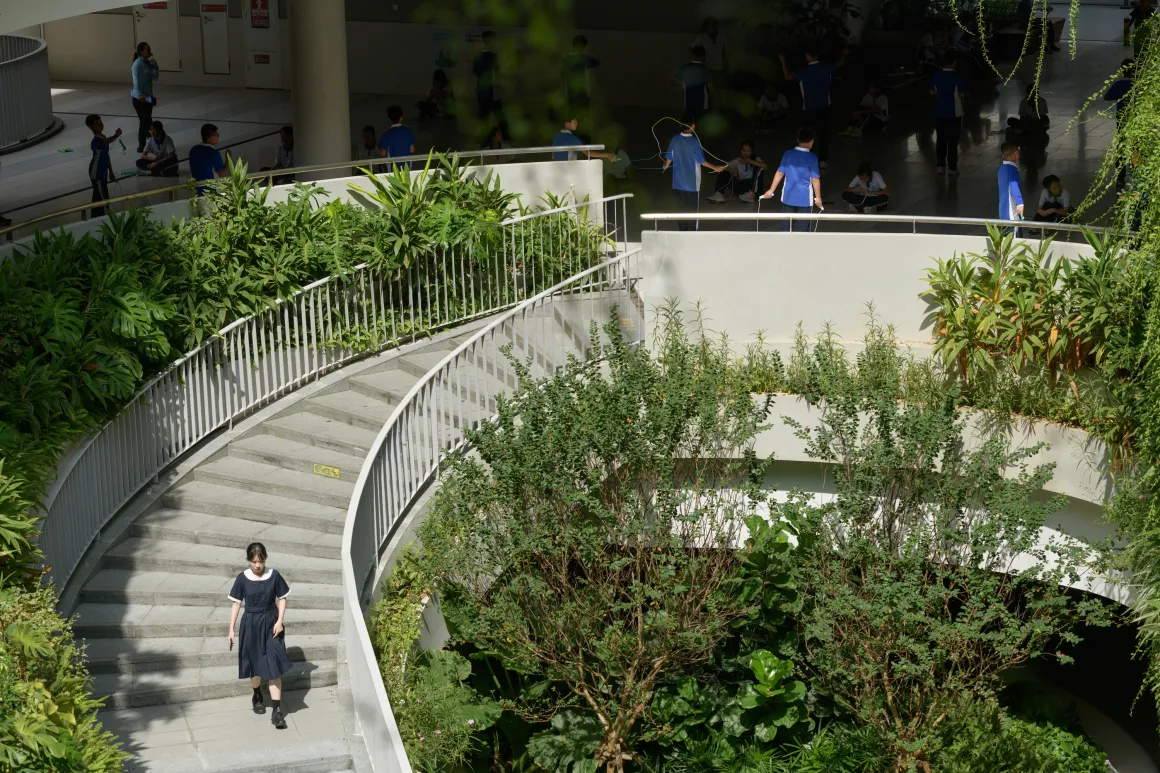 - Nature Garden (Vườn Thiên Nhiên): những “khoảnh xanh” như Science Pocket (khám phá thiên nhiên), Tree Table Pocket (học dưới bóng cây), Terraced Classroom (lớp học ngoài trời bậc thang) và Heart of Nature (bức tường xanh đa tầng) – tất cả được tích hợp khéo léo trên mái và các sàn kiến trúc.