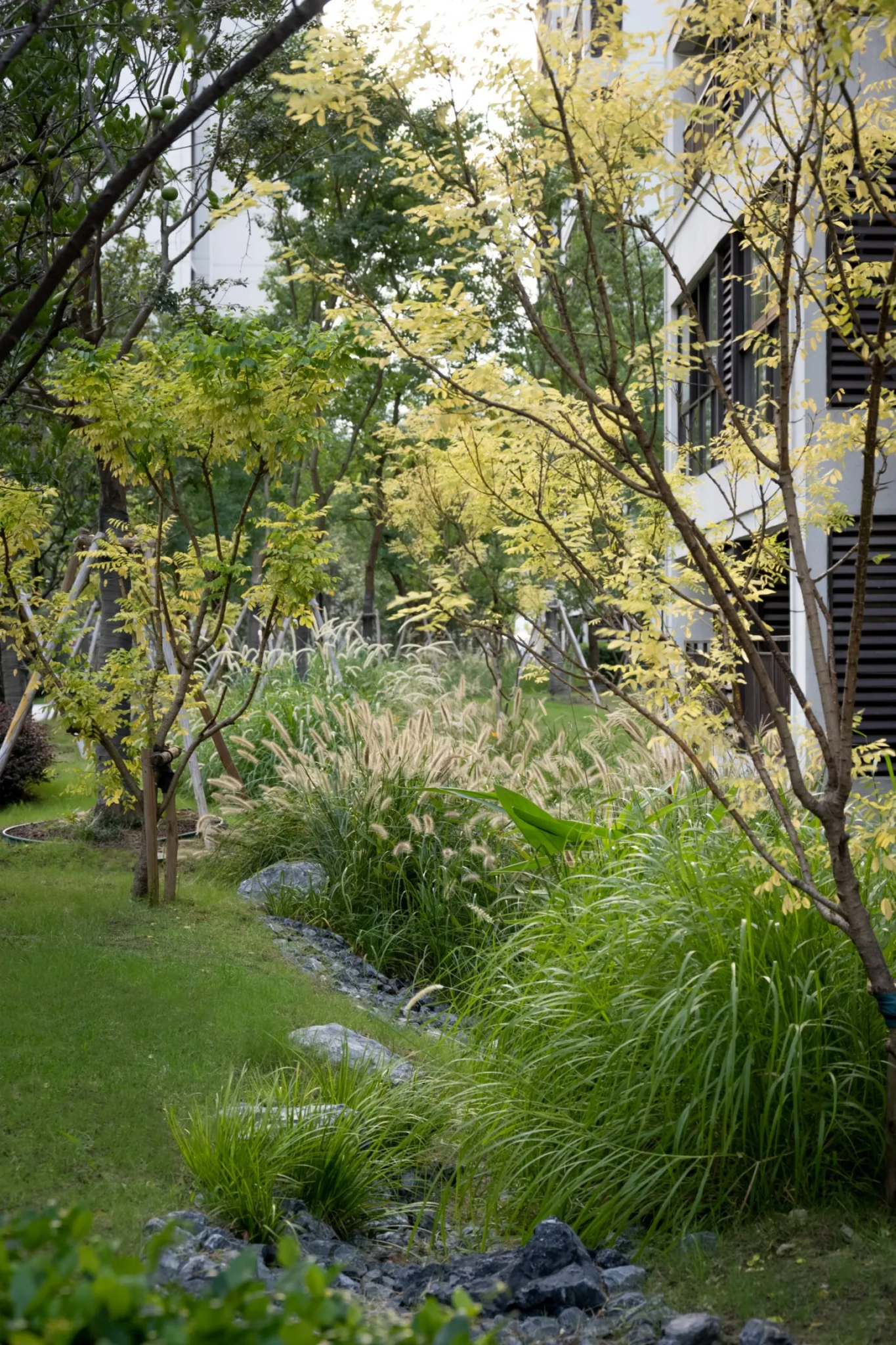 Tương đồng với tinh thần này, tại Giang Tô (Trung Quốc), dự án do L&A Design thực hiện đã ứng dụng quản lý nước mưa thông qua thiết kế cảnh quan với nhiều giải pháp cụ thể: